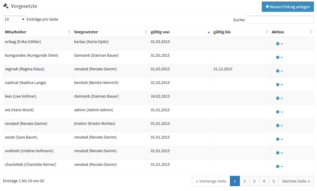 Sie können jedem Mitarbeiter für einen bestimmten Zeitraum einen Vorgesetzter zuordnen (oder mehrere). Das Ende dieses Zeitraums darf offen sein.